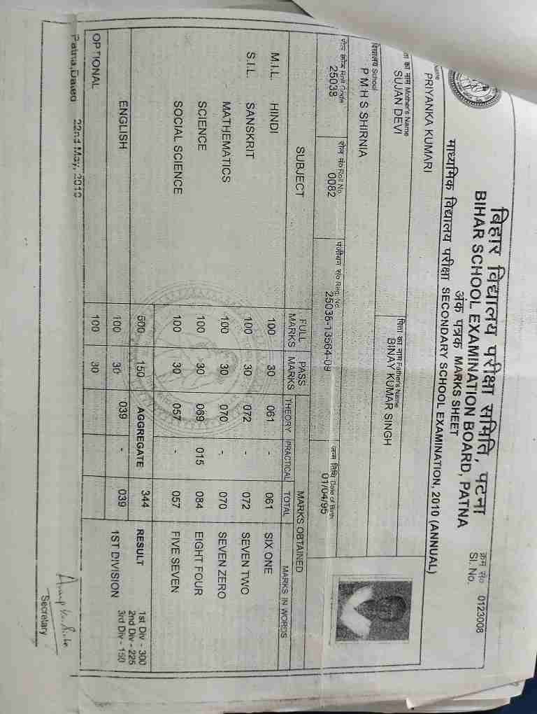 | Exam | Full Marks | Pass Marks | Marks Obtained |