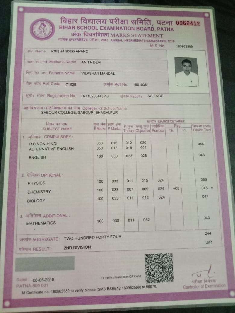 | Exam | Full Marks | Pass Marks | Marks Obtained |