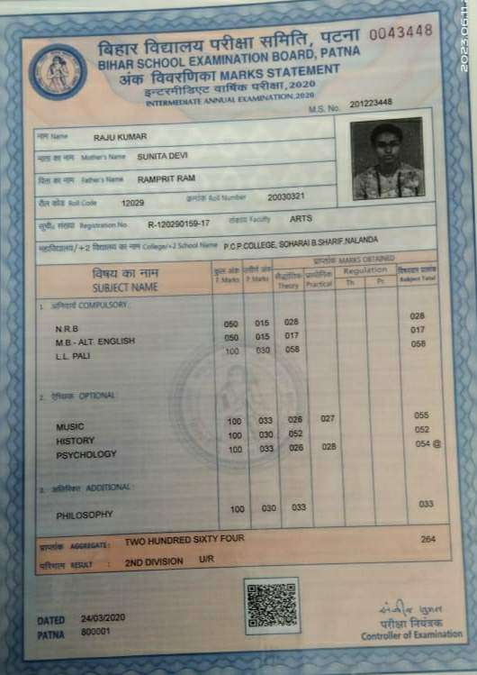 | Exam | Full Marks | Pass Marks | Marks Obtained |