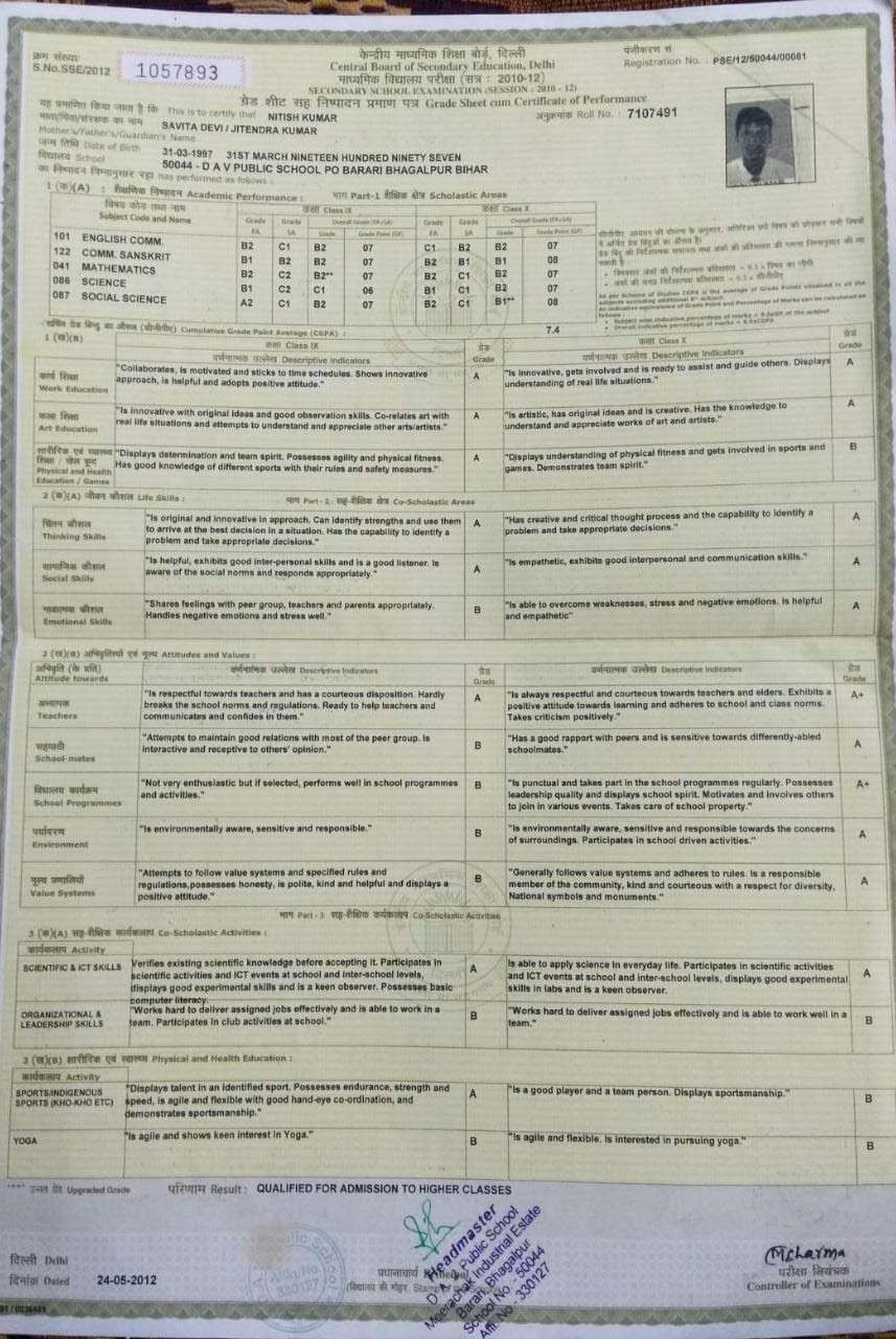 | Exam | Full Marks | Pass Marks | Marks Obtained |
