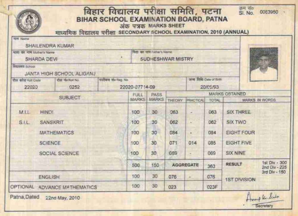 | Exam | Full Marks | Pass Marks | Marks Obtained |