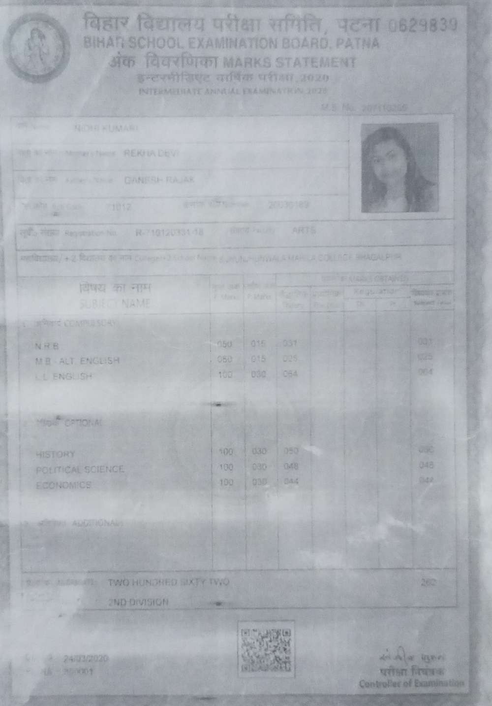 | Exam | Full Marks | Pass Marks | Marks Obtained |