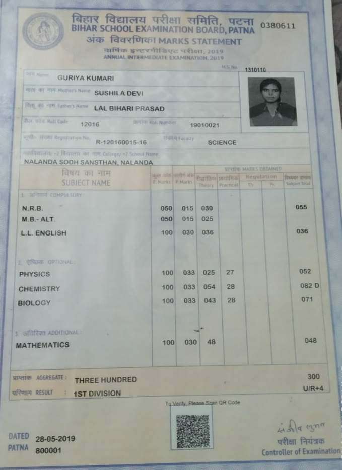 | Exam | Full Marks | Pass Marks | Marks Obtained |