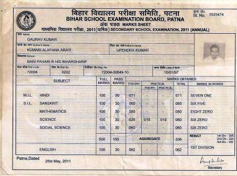 | Exam | Full Marks | Pass Marks | Marks Obtained |