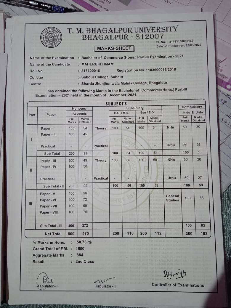 | Exam | Full Marks | Pass Marks | Marks Obtained |