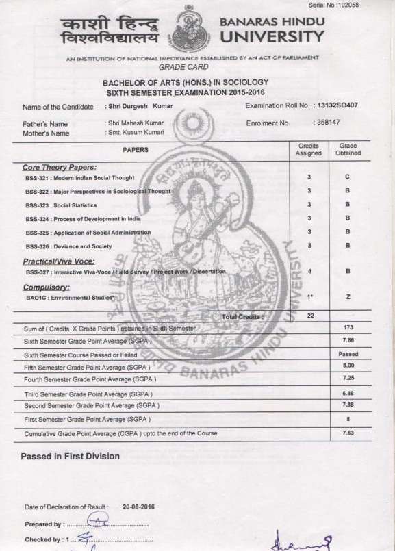 | Grade : A | Percentage : 82.25 % | MS. No. : 01865 | Date of Issue : 30-Oct-2019 |