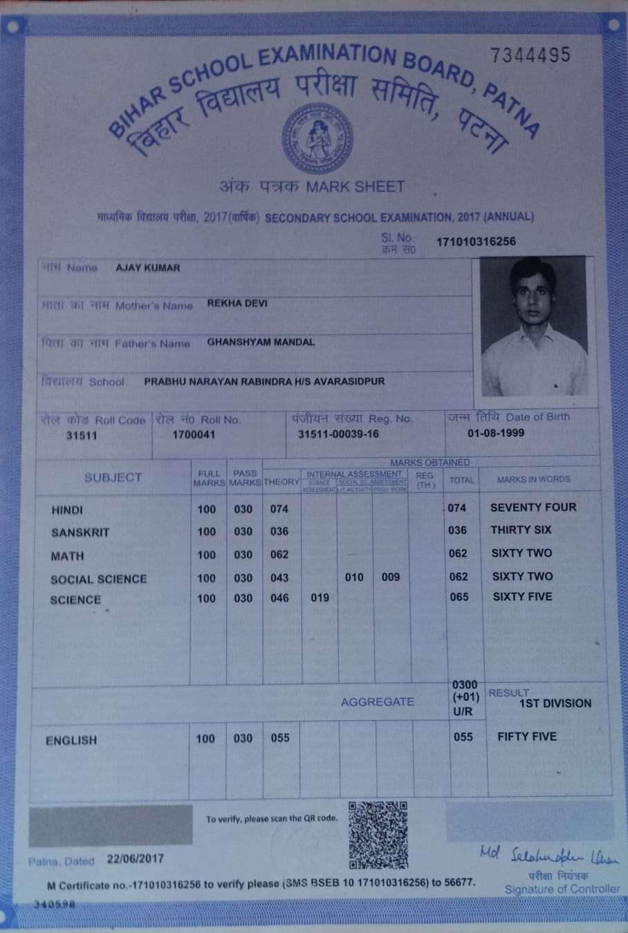 | Exam | Full Marks | Pass Marks | Marks Obtained |