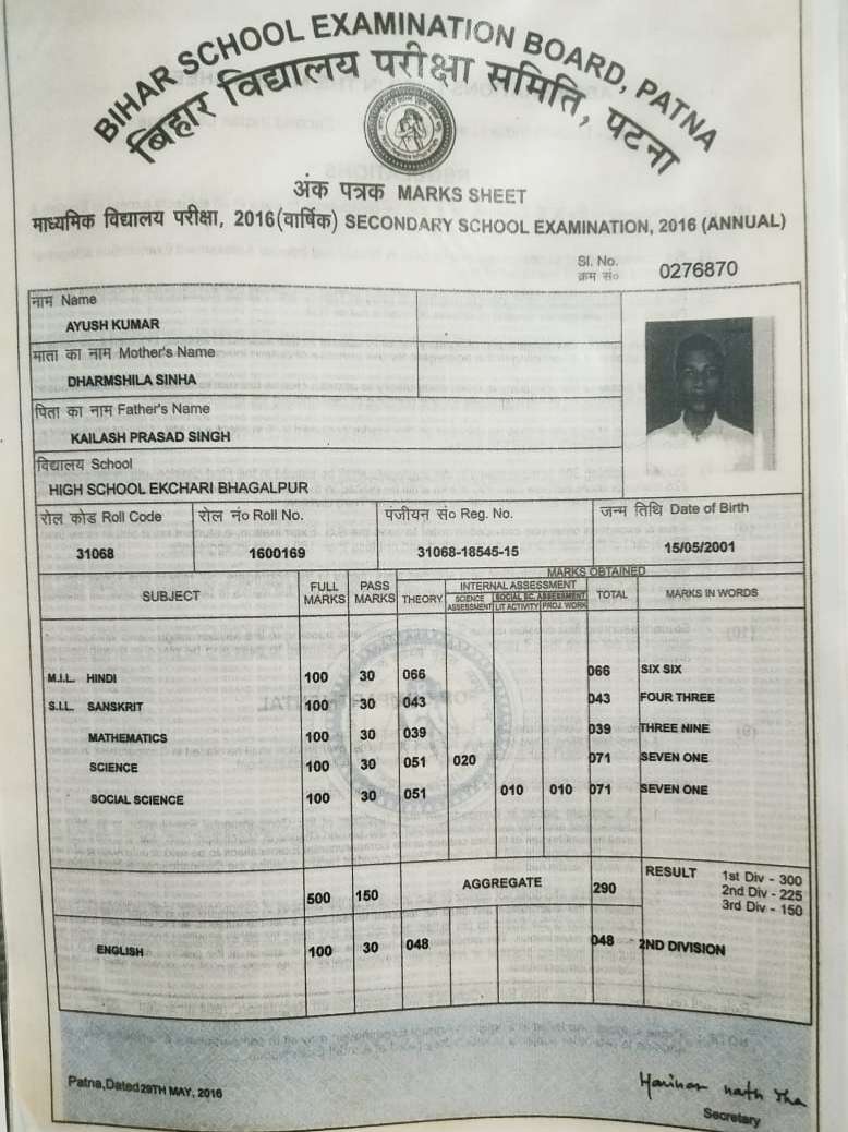 | Exam | Full Marks | Pass Marks | Marks Obtained |