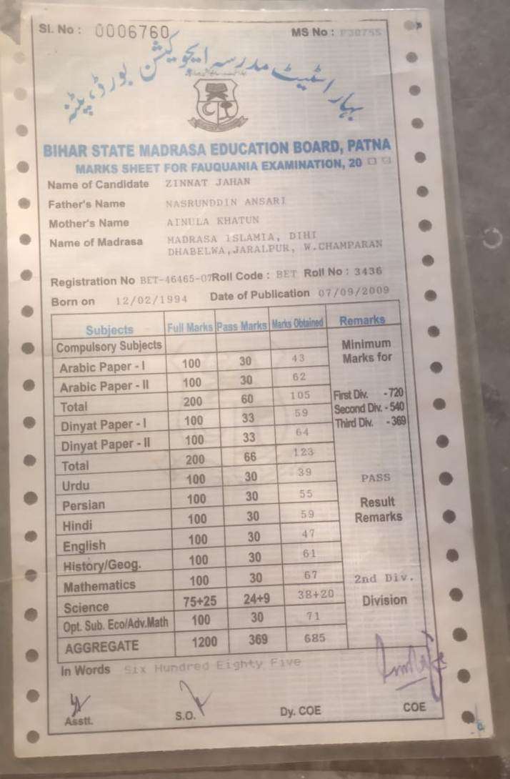 | Exam | Full Marks | Pass Marks | Marks Obtained |