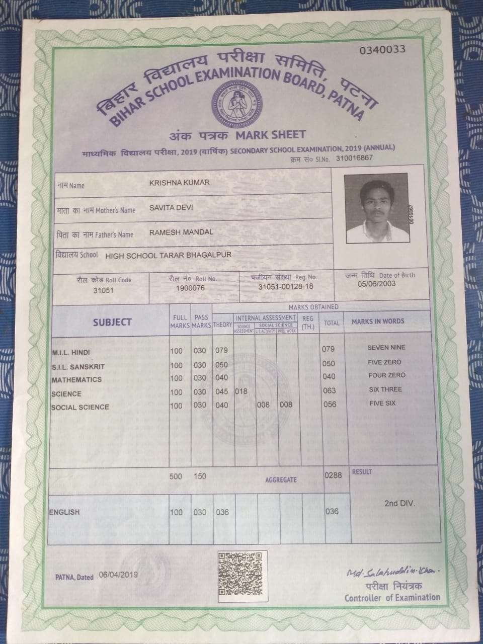 | : | Matric | |