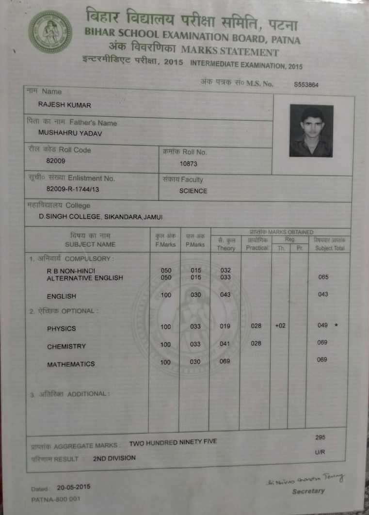 | Exam | Full Marks | Pass Marks | Marks Obtained |