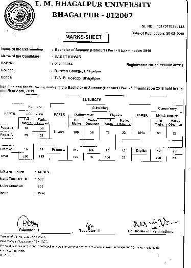 | Exam | Full Marks | Pass Marks | Marks Obtained |