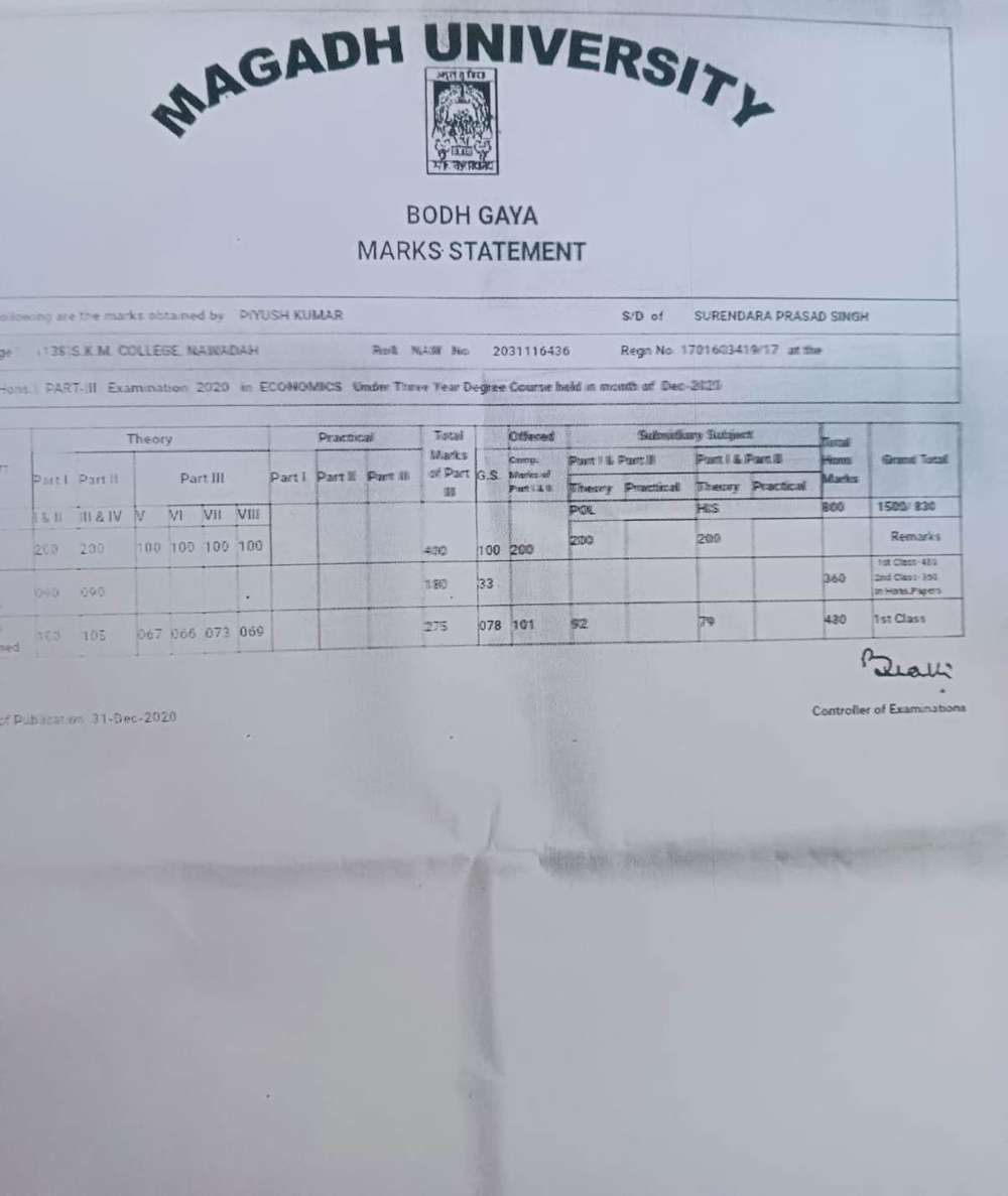 | Exam | Full Marks | Pass Marks | Marks Obtained |