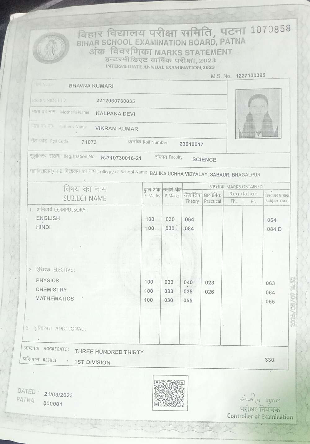 | Exam | Full Marks | Pass Marks | Marks Obtained |