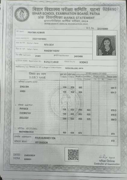 | Exam | Full Marks | Pass Marks | Marks Obtained |