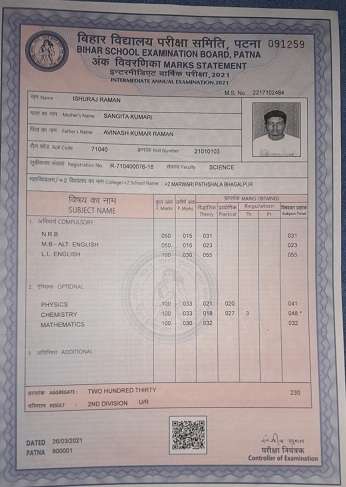 | Exam | Full Marks | Pass Marks | Marks Obtained |