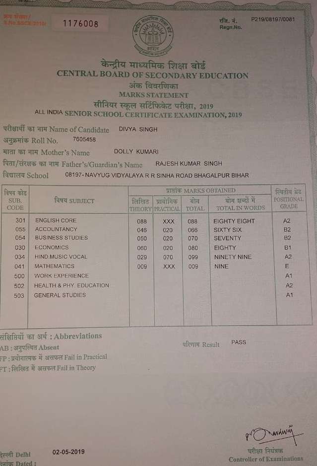 | Grade : A | Percentage : 84.75 % | MS. No. : 04179 | Date of Issue : 05-Oct-2020 |