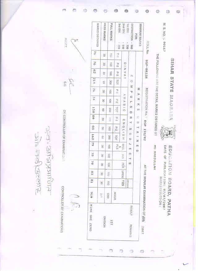 | Exam | Full Marks | Pass Marks | Marks Obtained |