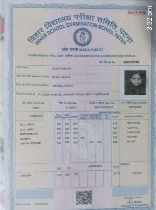 | Exam | Full Marks | Pass Marks | Marks Obtained |