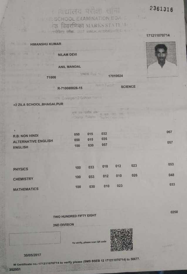 | Exam | Full Marks | Pass Marks | Marks Obtained |