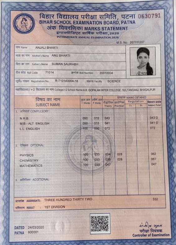 | Exam | Full Marks | Pass Marks | Marks Obtained |