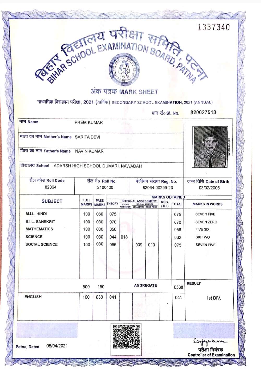 | Exam | Full Marks | Pass Marks | Marks Obtained |