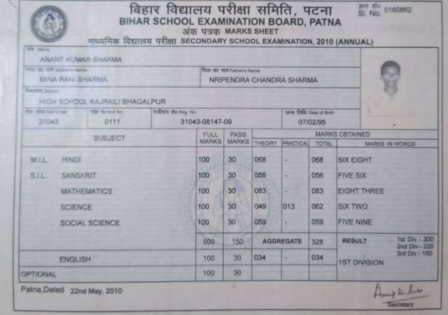 | Exam | Full Marks | Pass Marks | Marks Obtained |