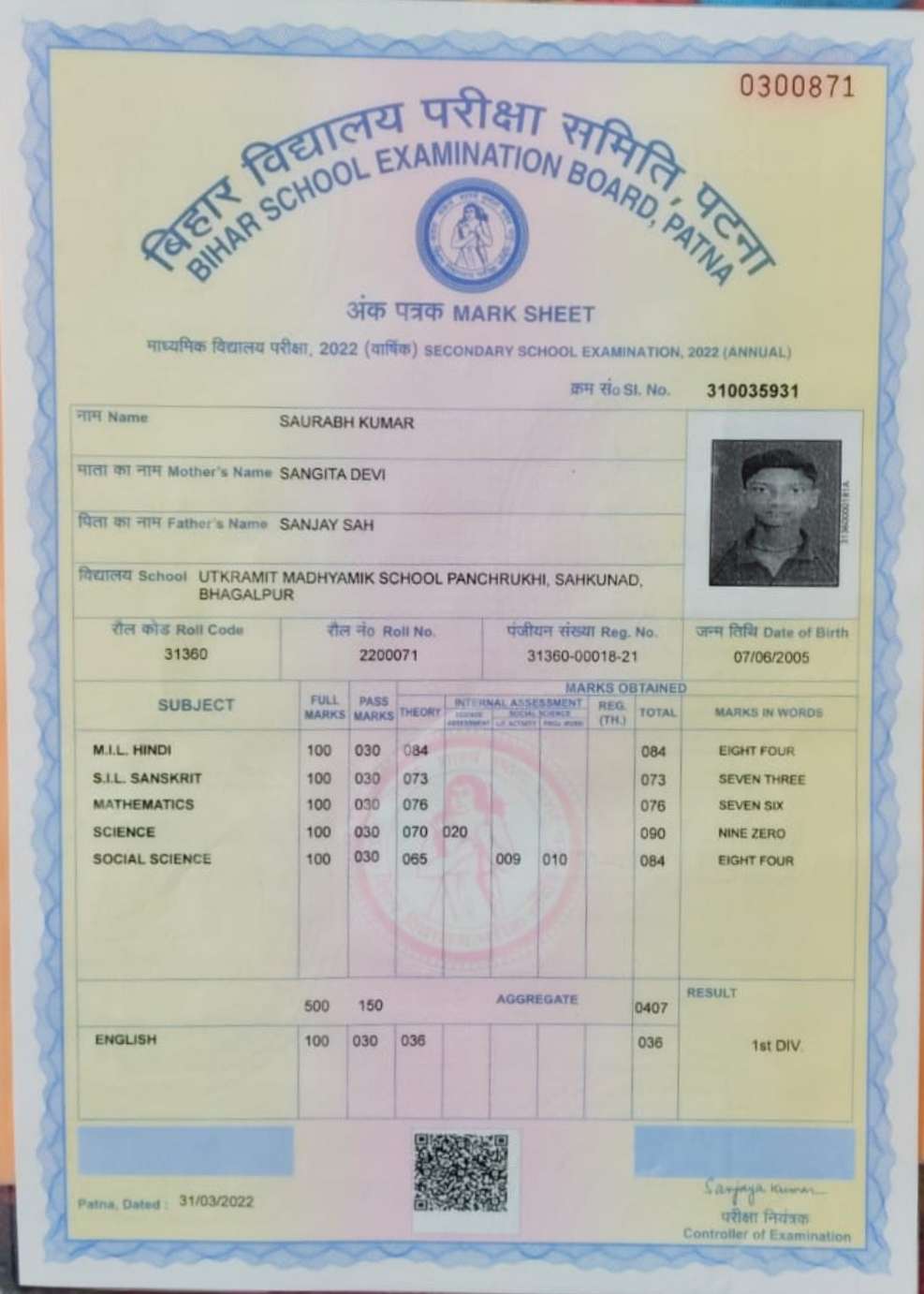 | Grade : A | Percentage : 82.50 % | MS. No. : 40238 | Date of Issue : 15-Sep-2025 |