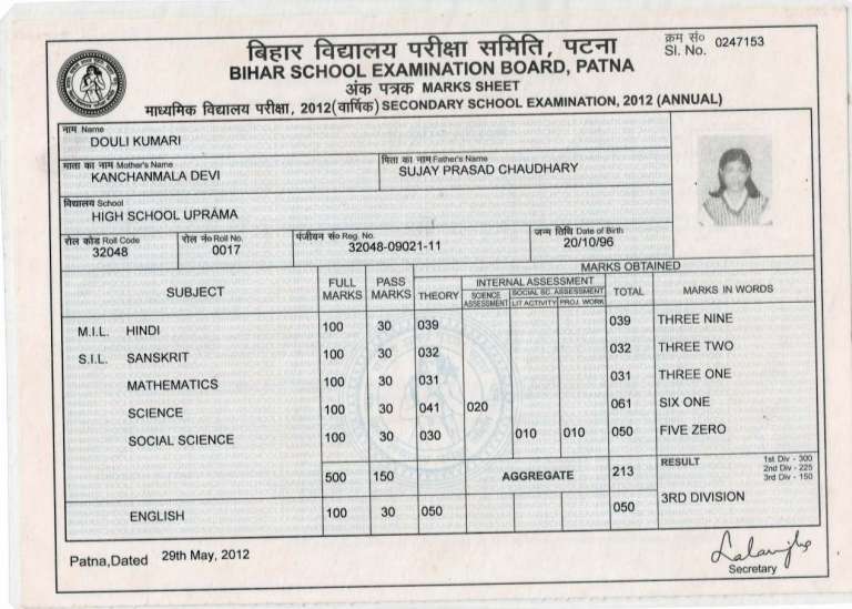 | Exam | Full Marks | Pass Marks | Marks Obtained |