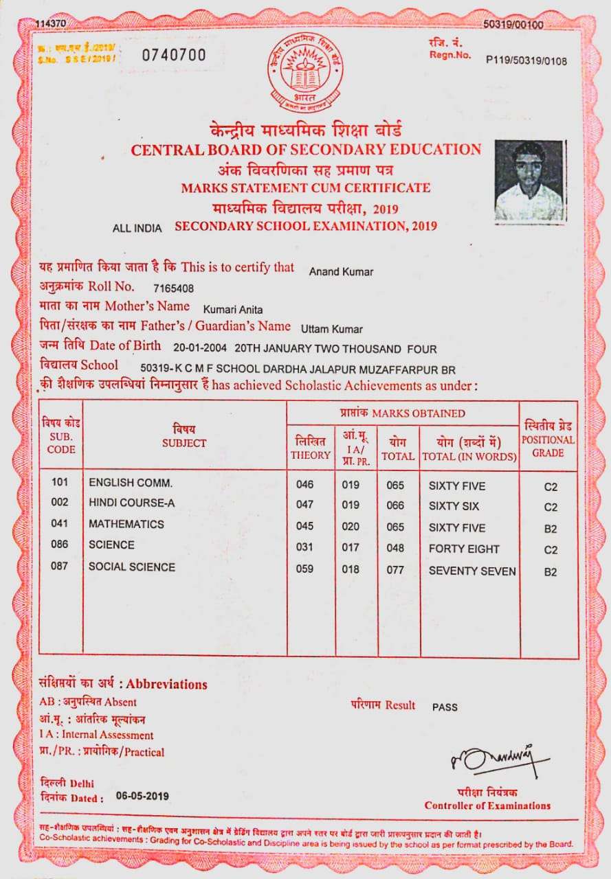 | Exam | Full Marks | Pass Marks | Marks Obtained |
