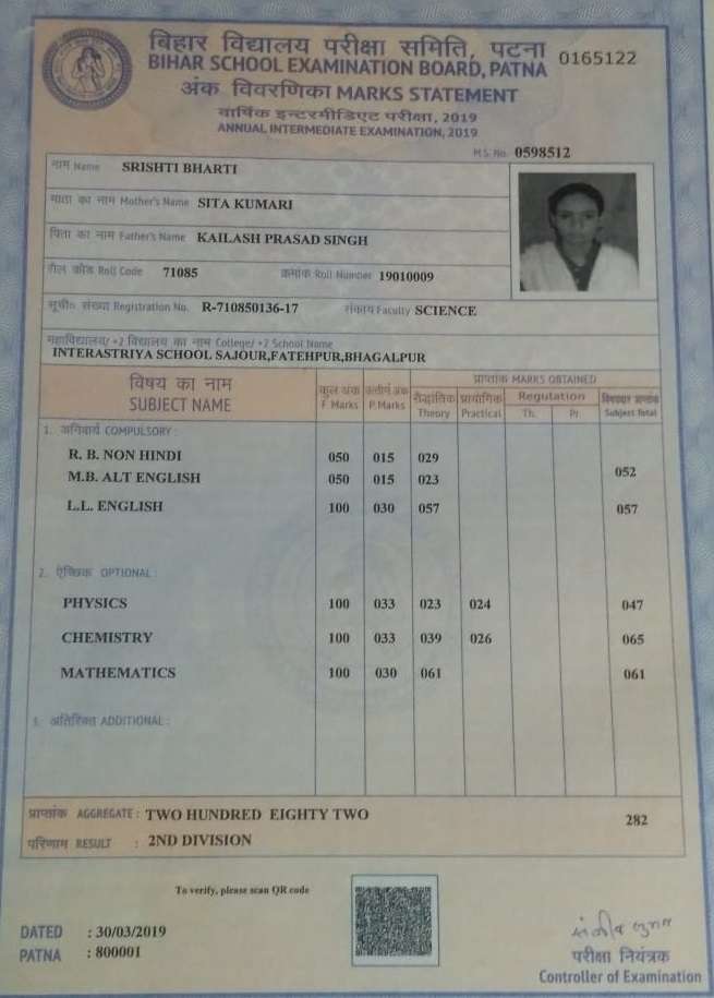 | Exam | Full Marks | Pass Marks | Marks Obtained |