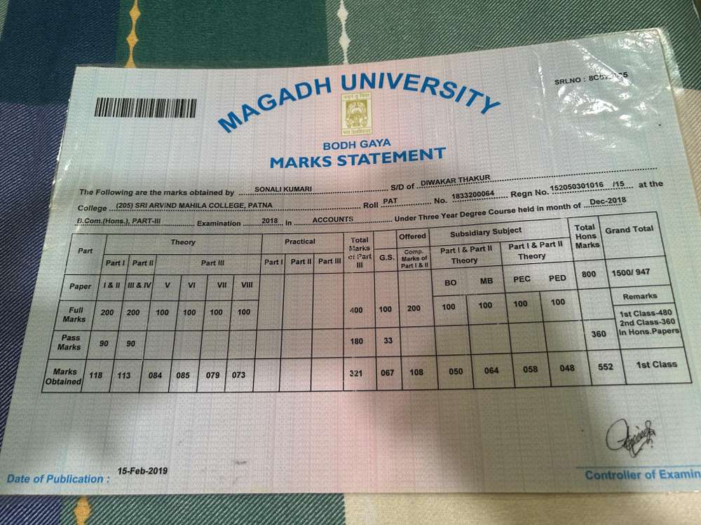 | Exam | Full Marks | Pass Marks | Marks Obtained |