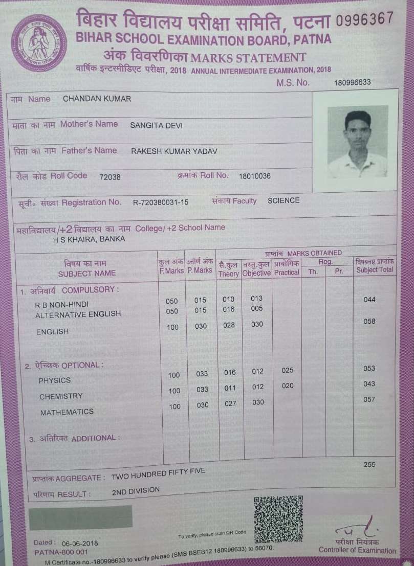 | Exam | Full Marks | Pass Marks | Marks Obtained |
