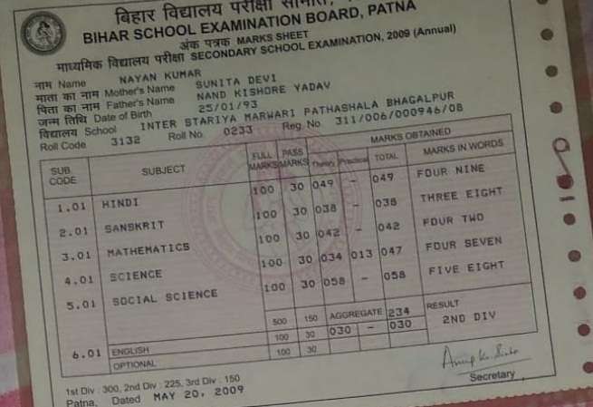| Exam | Full Marks | Pass Marks | Marks Obtained |