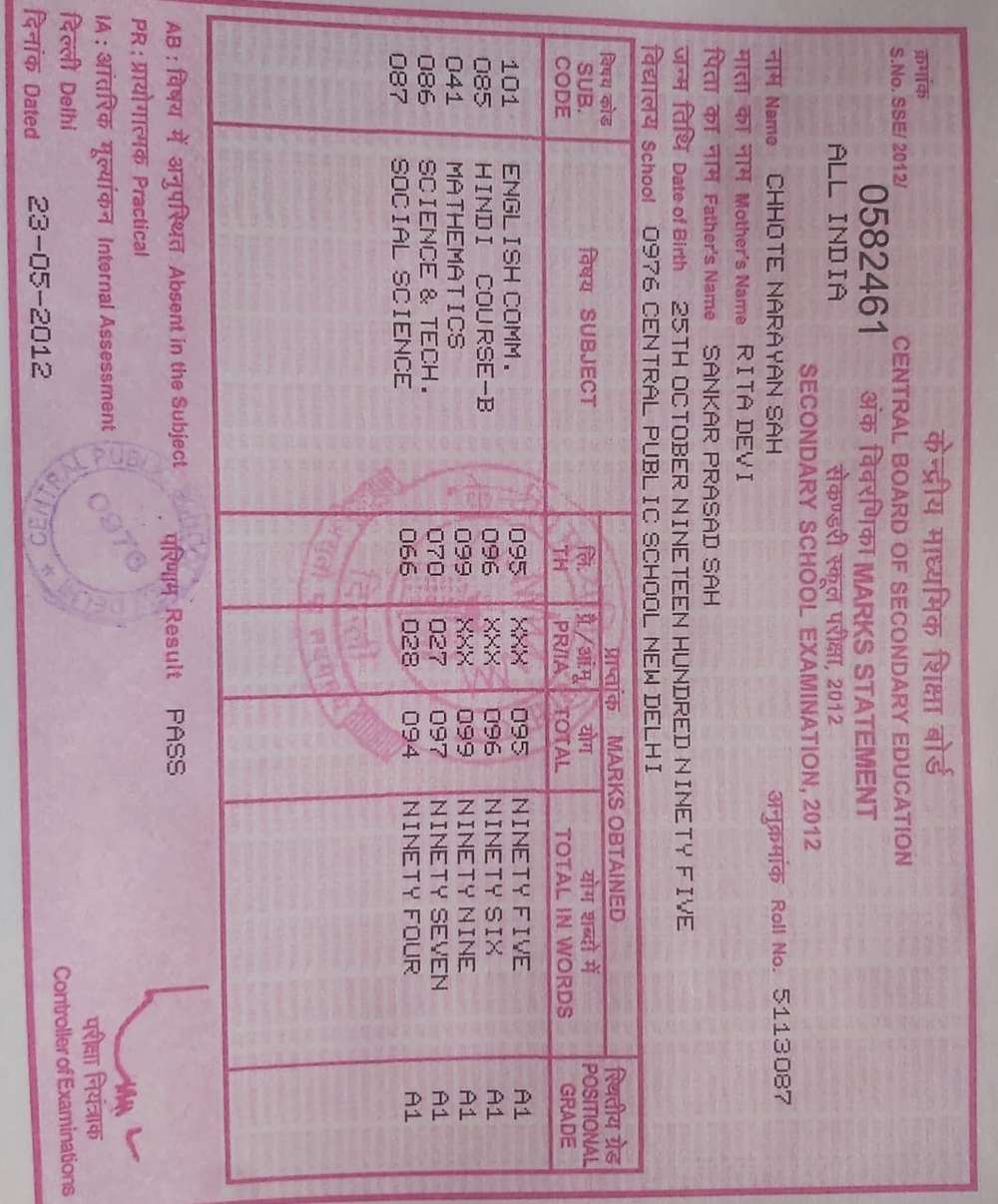 | Exam | Full Marks | Pass Marks | Marks Obtained |