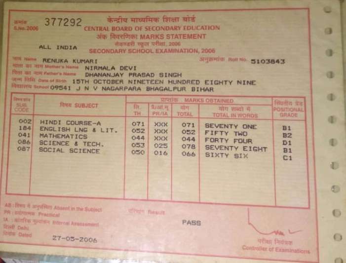 | Exam | Full Marks | Pass Marks | Marks Obtained |