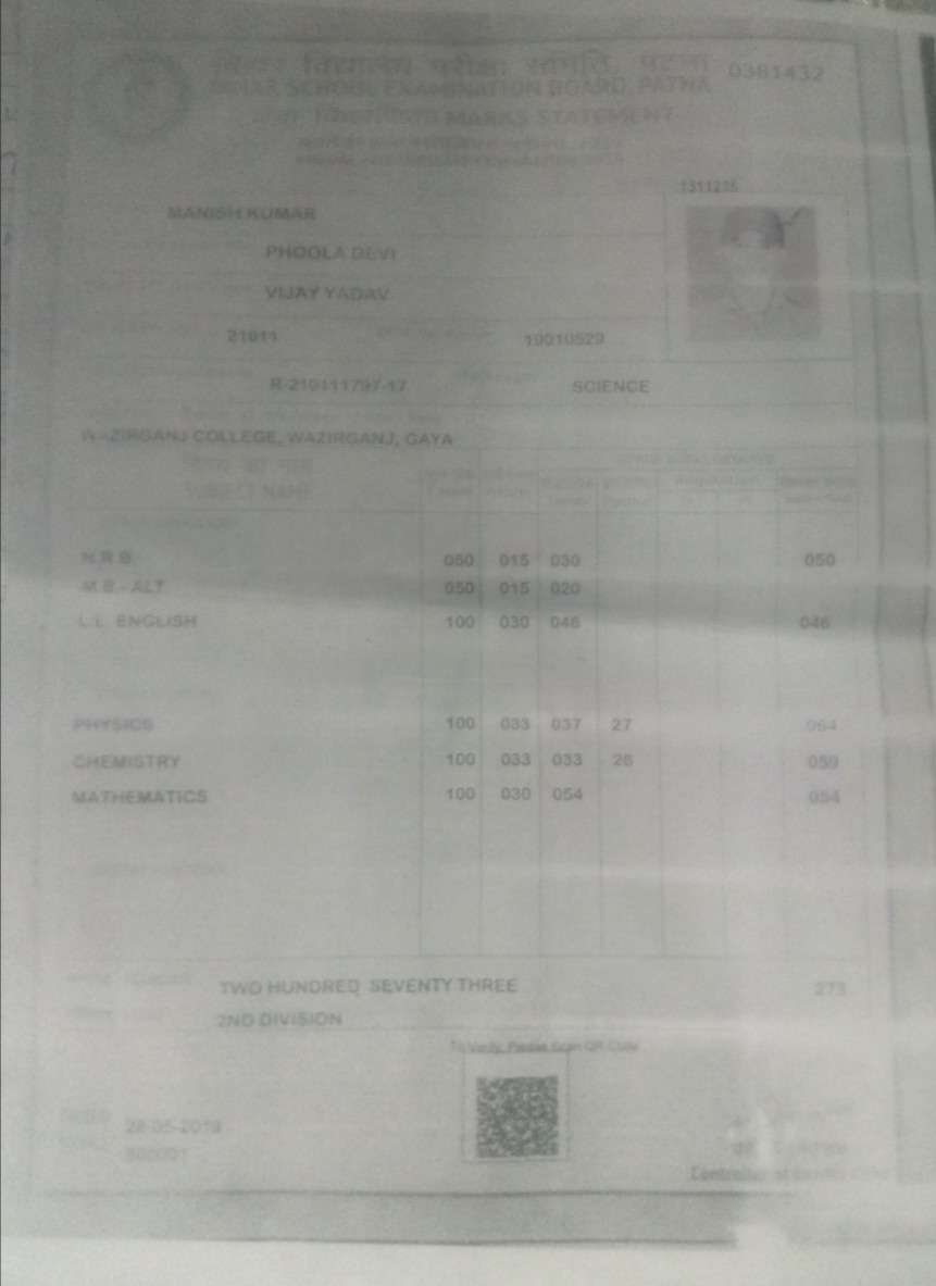 | Exam | Full Marks | Pass Marks | Marks Obtained |