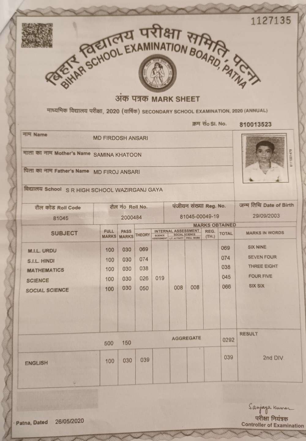 | Exam | Full Marks | Pass Marks | Marks Obtained |