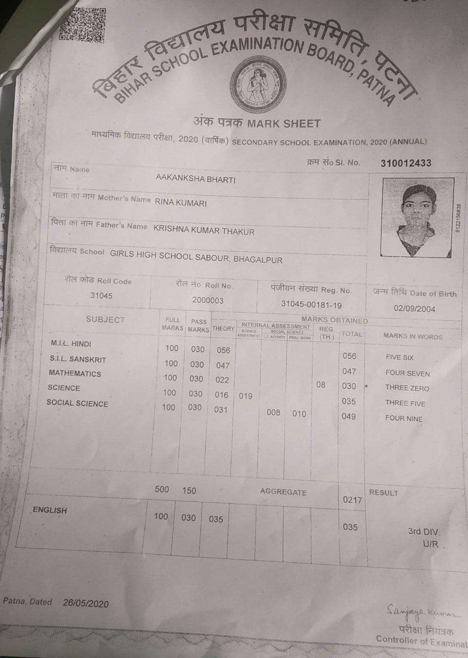 | Exam | Full Marks | Pass Marks | Marks Obtained |