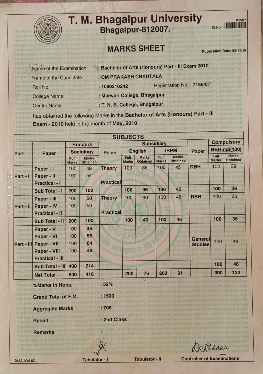 | Exam | Full Marks | Pass Marks | Marks Obtained |