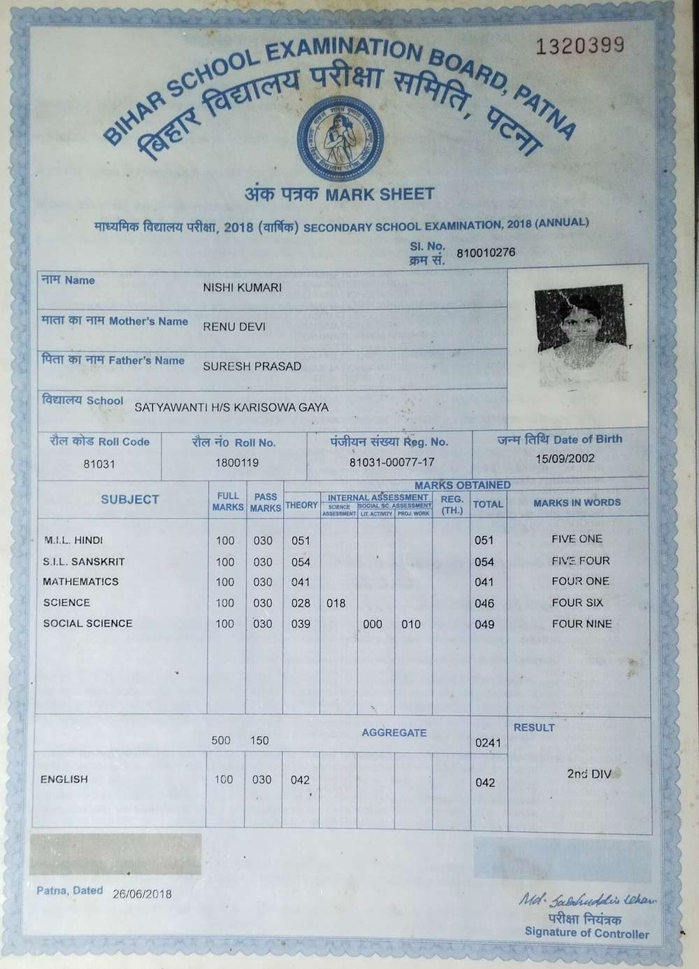 | Exam | Full Marks | Pass Marks | Marks Obtained |