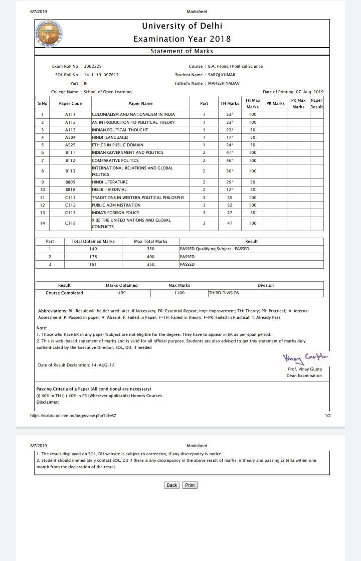 | Exam | Full Marks | Pass Marks | Marks Obtained |