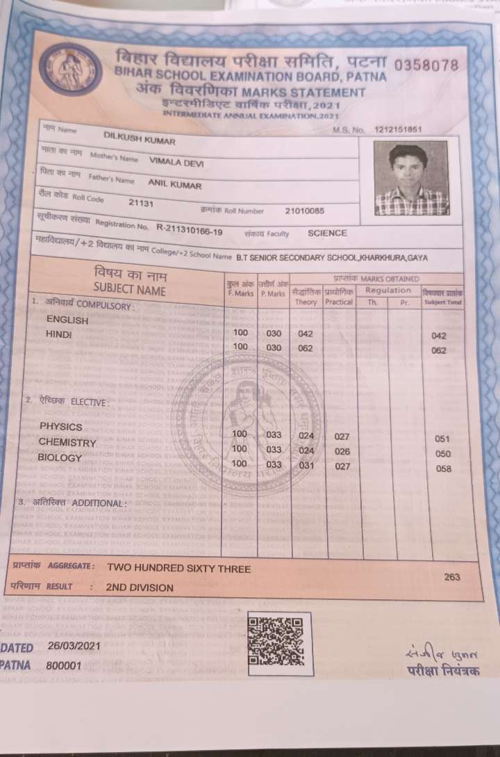 | Exam | Full Marks | Pass Marks | Marks Obtained |
