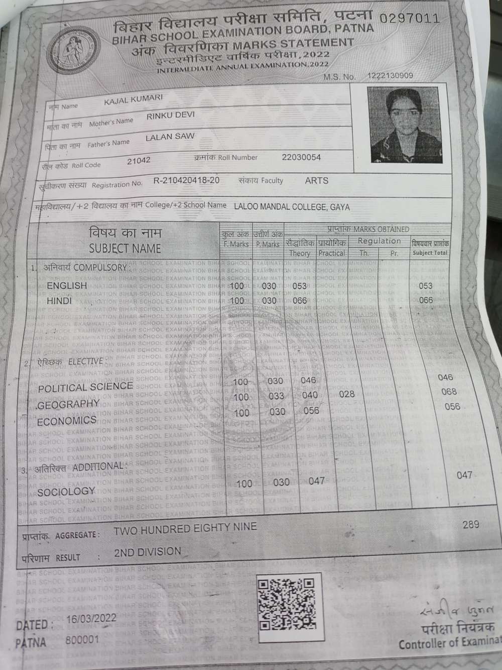| Exam | Full Marks | Pass Marks | Marks Obtained |