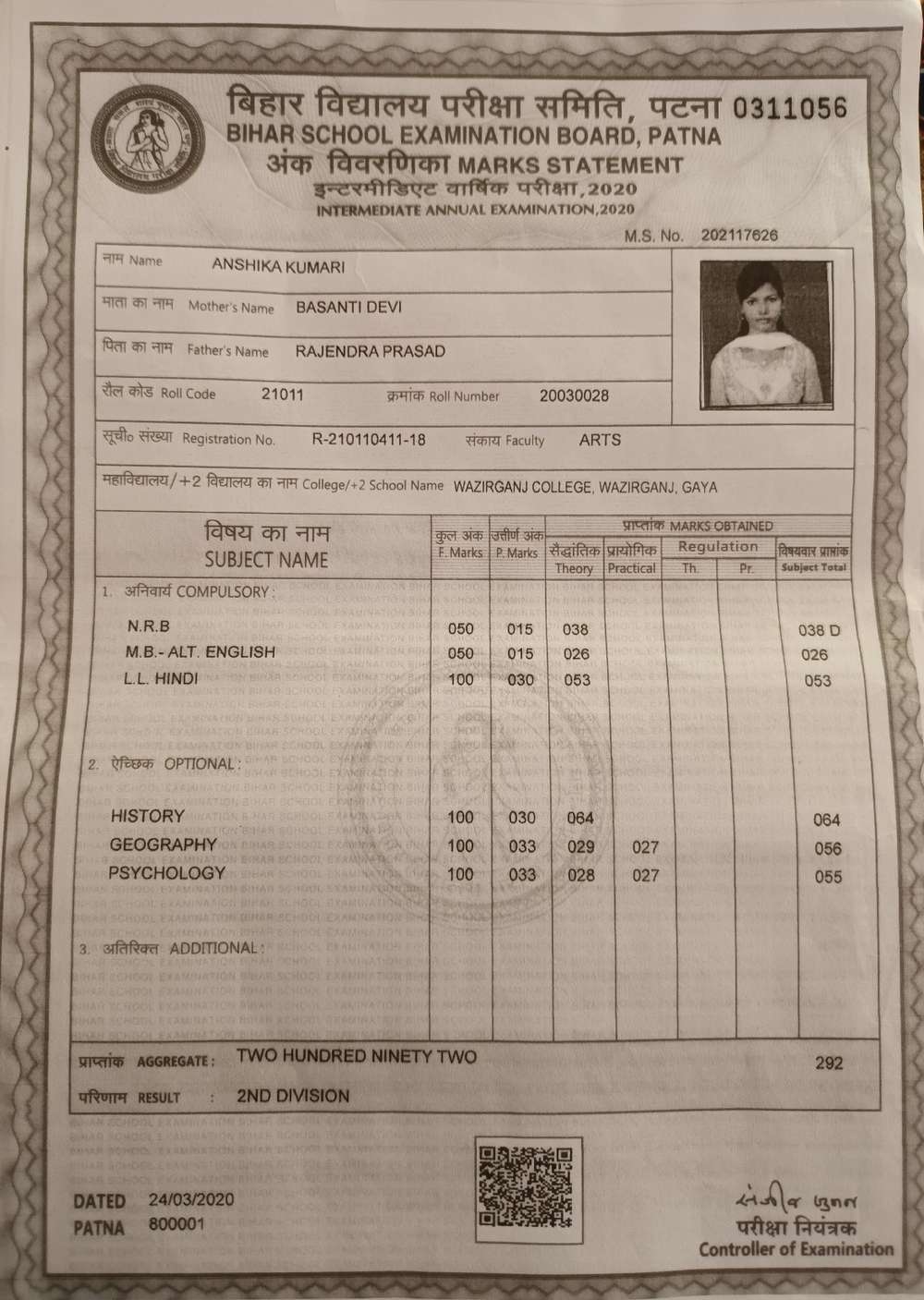 | Exam | Full Marks | Pass Marks | Marks Obtained |
