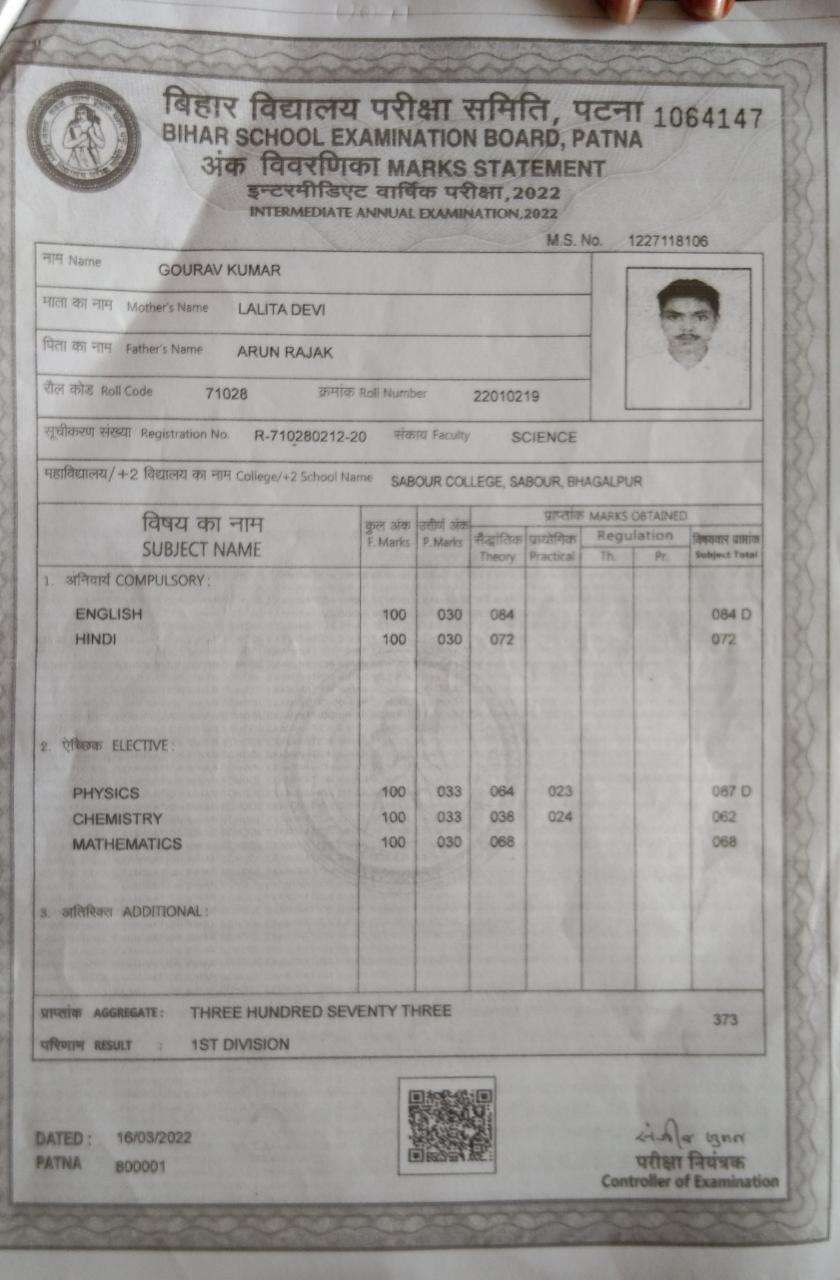 | Exam | Full Marks | Pass Marks | Marks Obtained |