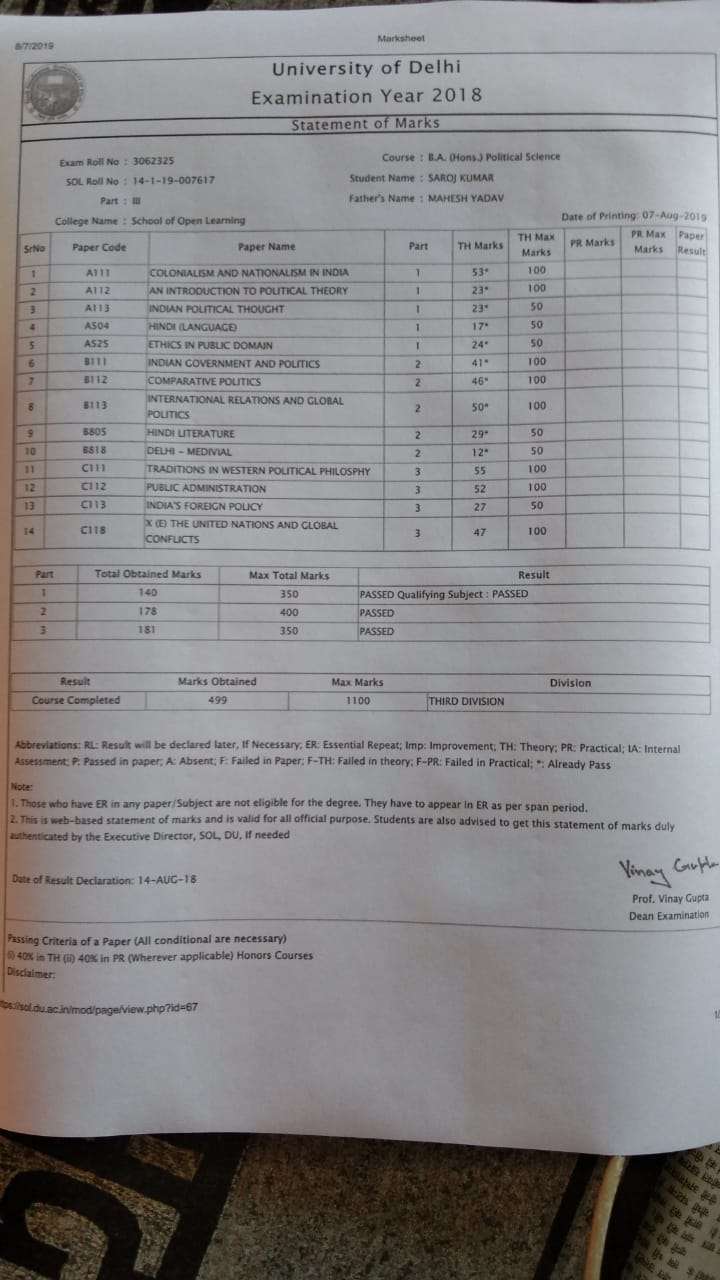 | Exam | Full Marks | Pass Marks | Marks Obtained |