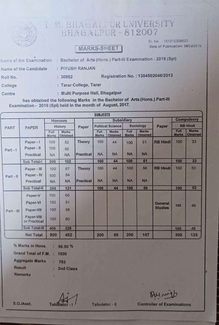 | Exam | Full Marks | Pass Marks | Marks Obtained |