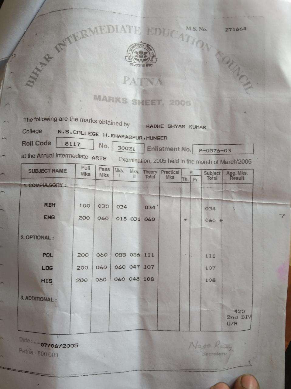 | Exam | Full Marks | Pass Marks | Marks Obtained |
