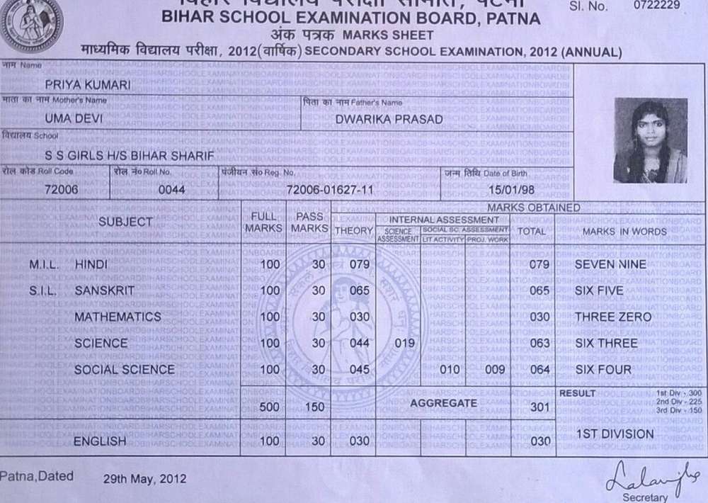 | Exam | Full Marks | Pass Marks | Marks Obtained |